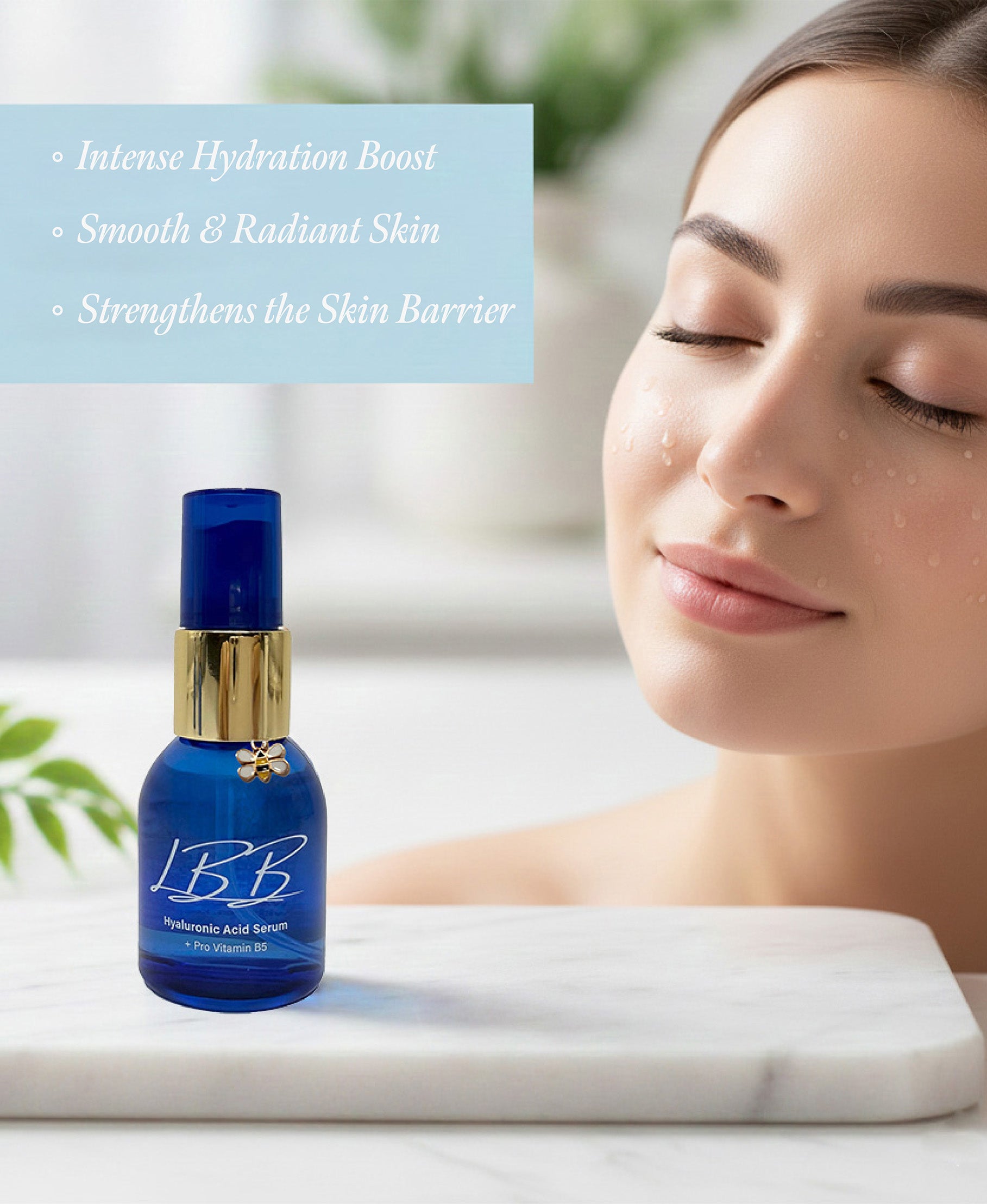 Our Hyaluronic Acid Serum is boosted with Pro-Vitamin B5, delivering an intense surge of moisture, leaving your skin hydrated, smooth and luminous. Experience a youthful transformation with our LBB serum, designed to minimise fine lines and restore your skin’s natural glow through deep hydration. Infused with hyaluronic acid and pro-vitamin B5, this serum provides essential nutrients, enhancing skin elasticity and smoothness.